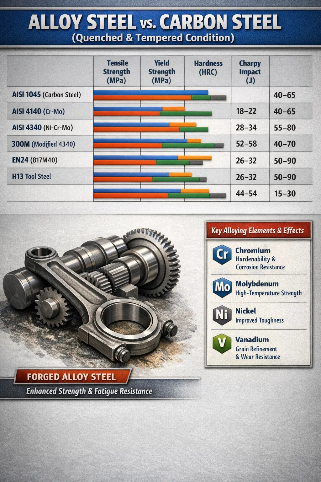 Kľúčové triedy kovania legovanej ocele a ich profily pevnosti