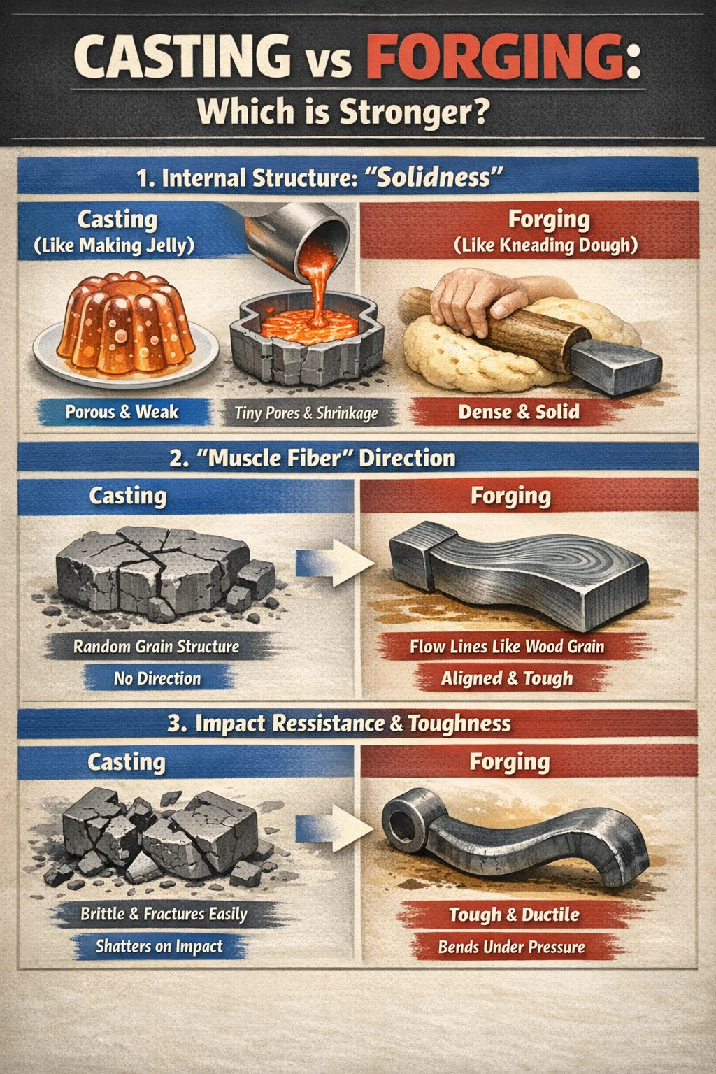 Vo väčšine prípadov je kovanie pevnejšie ako odlievanie.